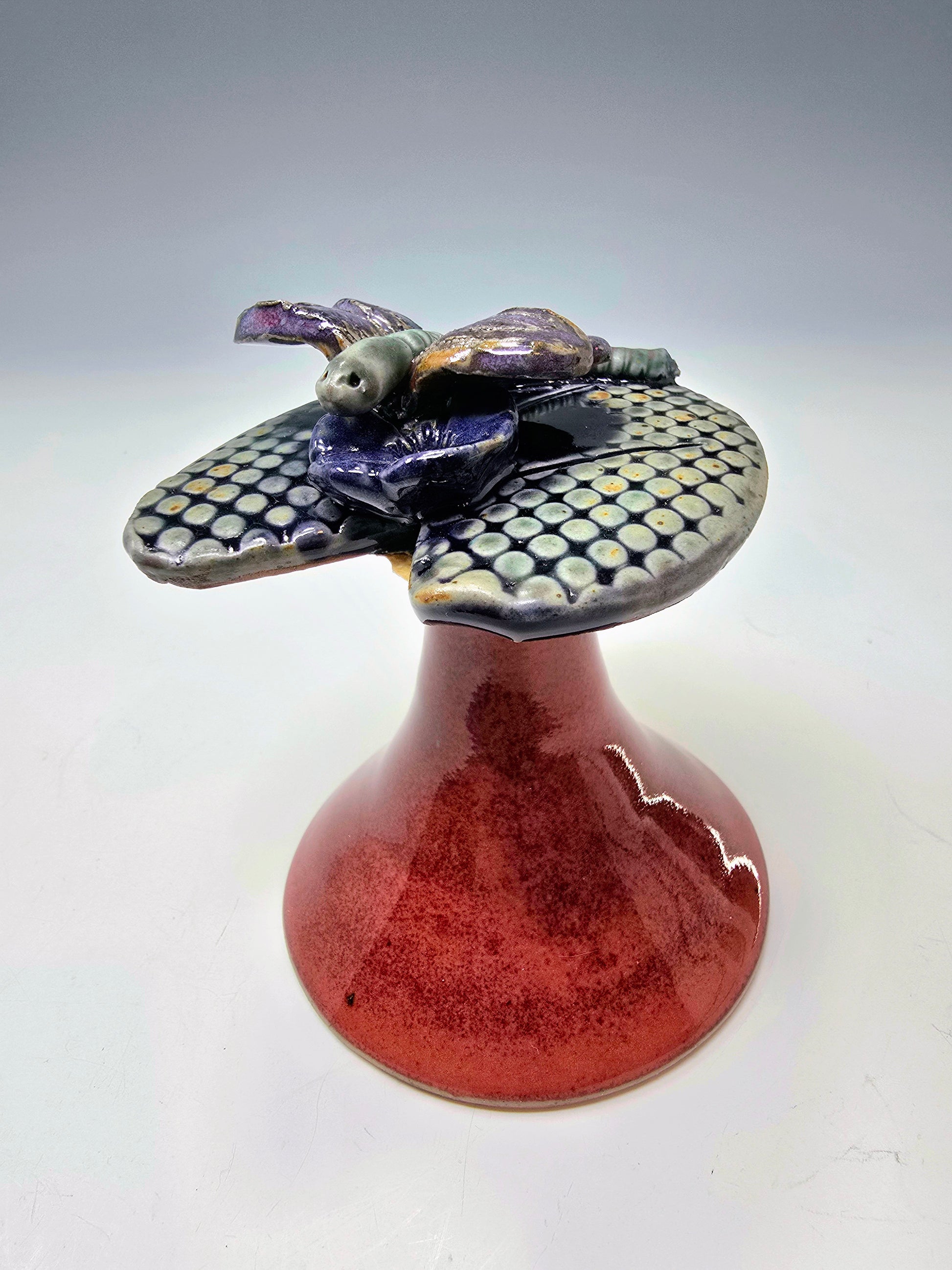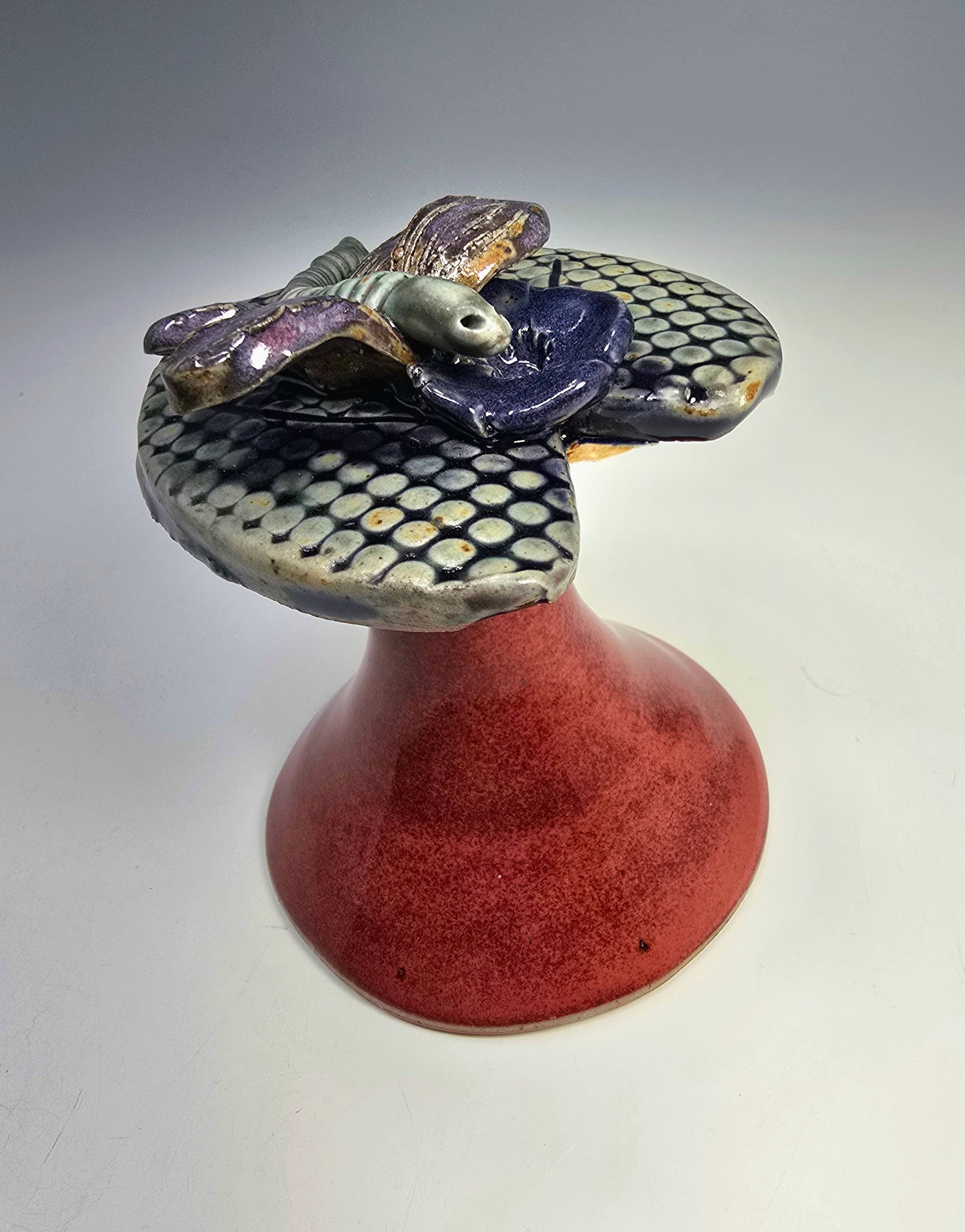 This footed piece can be custom made with your choice of sculptures, frogs, birds, pets, you name it. Just call for custom ordering! 847-852-0636